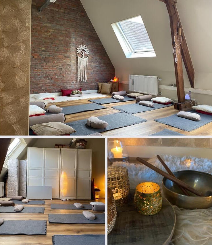 De praktijkruimte van Essentire is licht, rustig en sfeervol ingericht – ideaal voor individuele sessies, kleine groepen, massage, yoga (Yin, Nidra, Restorative) of workshops tot 6 personen.Inclusief gebruik van matten, kussens en dekens.